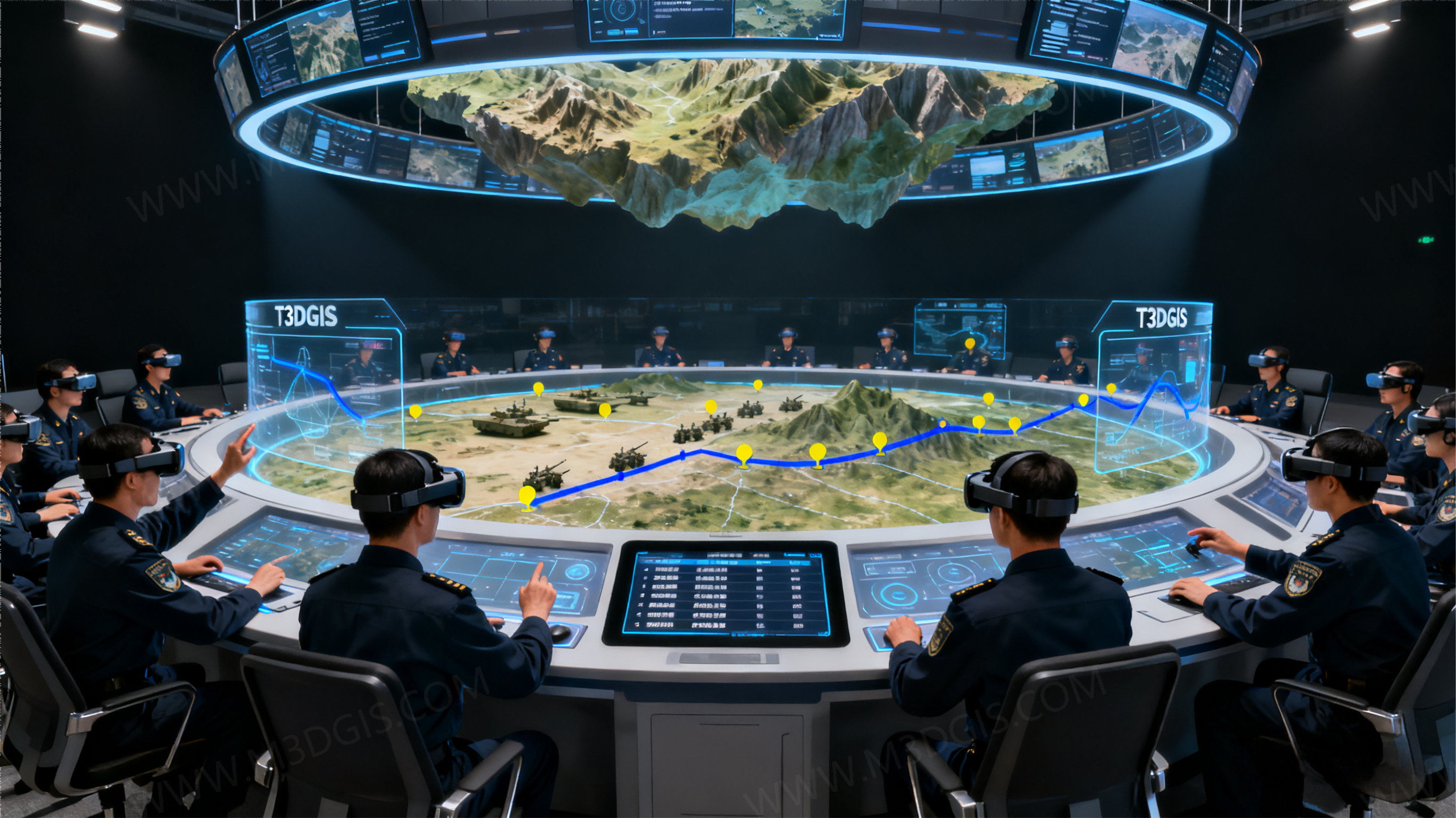 GIS+VR地理信息虚拟现实XR MR AR:T3DGIS 地理信息系统与 XR技术深度耦合,构建 “虚实共生、动态映射” 的沉浸式战场地理信息平台。依托头戴式 XR (VR/AR/MR)终端,可实时接入可交互、可漫游、可推演的三维环境,为决策、模拟训练等核心场景,提供具有态势感知优势的地理信息支撑
