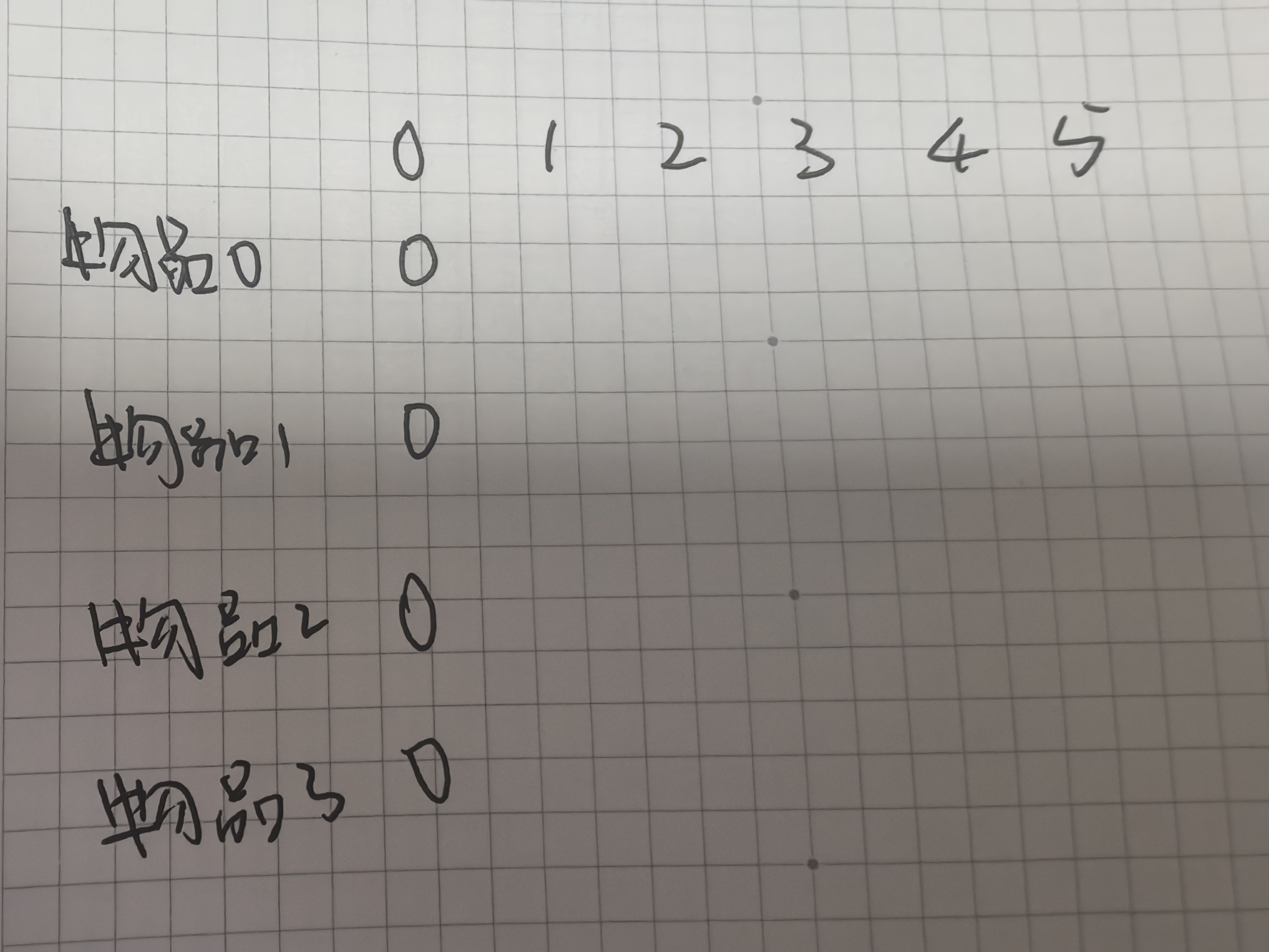 首先确定dp数组以及下标的含义:dp[i][j] 表示从下标为[0-i]的物品里任意取,放进容量为j的背包,价值总和最大是多少。