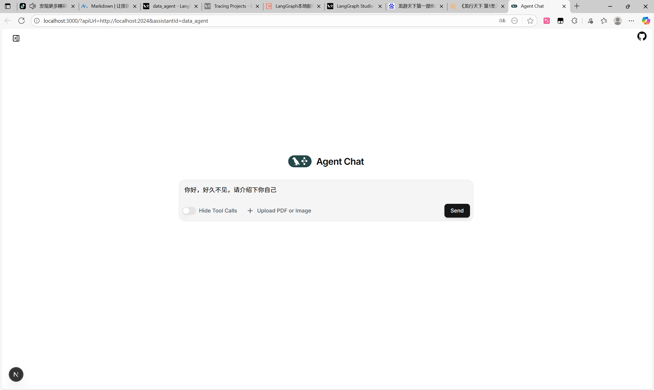 这个前端服务会默认从2024端口接入后端功能,确保后端服务是正常运行的情况下,在3000这个前端的端口登录Agent Chat主页