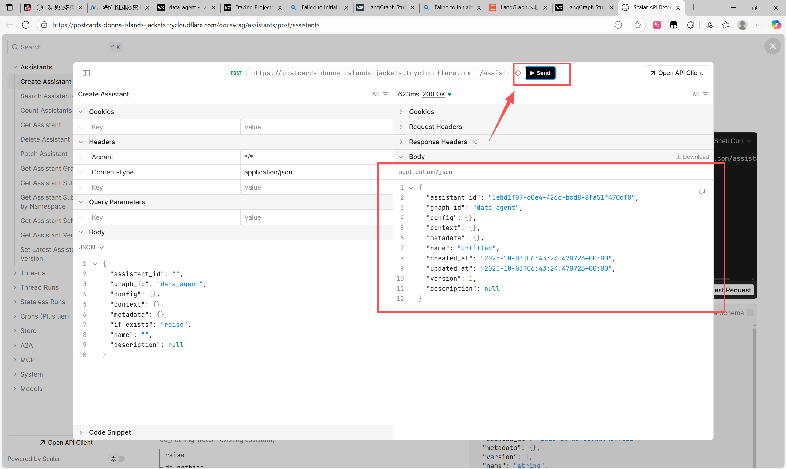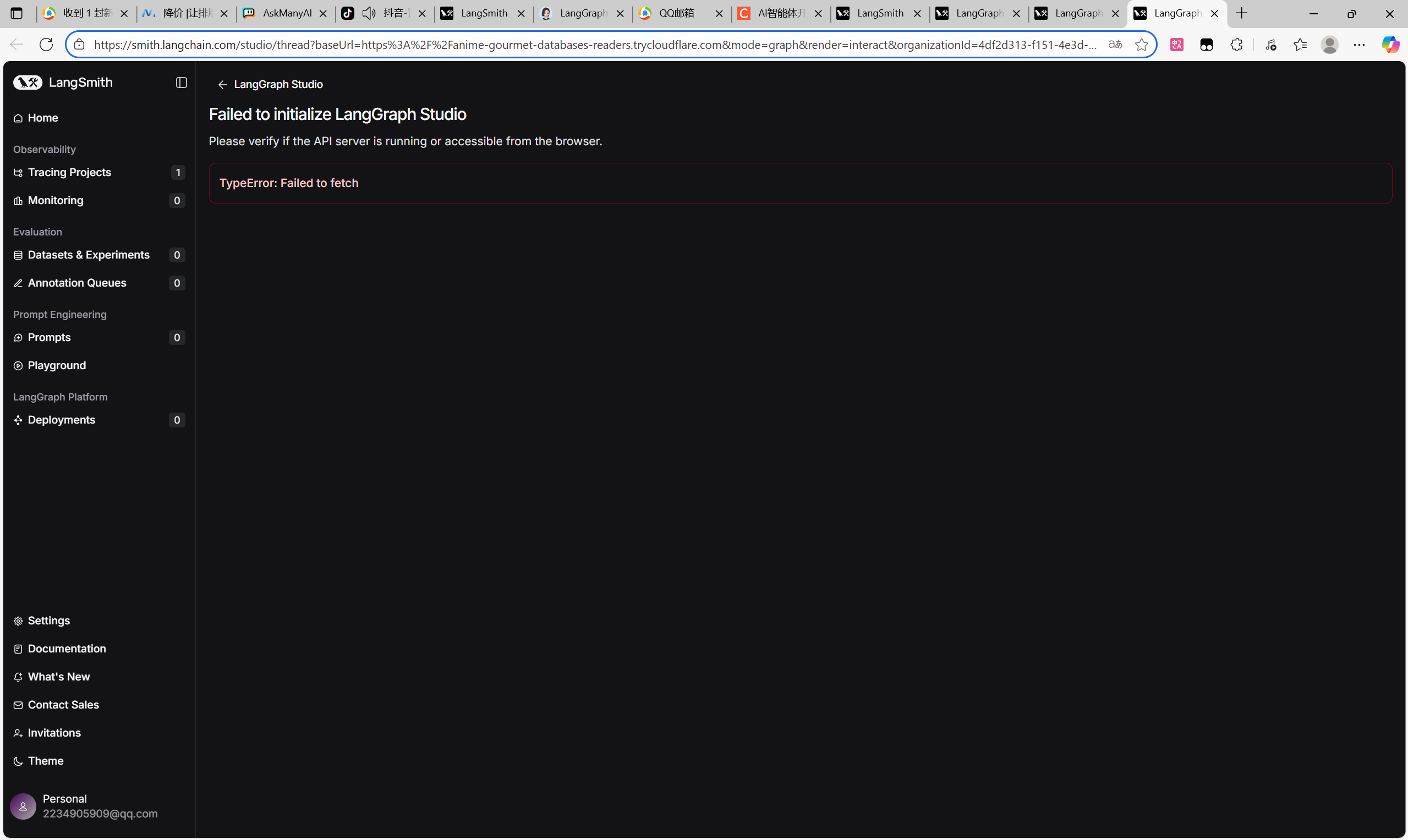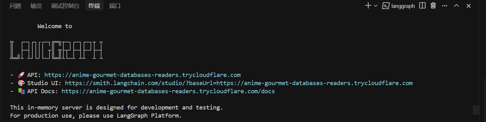 需要远程访问或避免浏览器限制,可以使用 --tunnel 参数。在运行langgraph dev --tunnel 在下载 Cloudflare 的 cloudflared 可执行文件时访问 GitHub 超时(WinError 10060)。