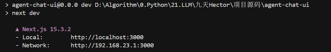 然后在cursor中再打开一个命令行,并进入到Agent chat Ul的目录下