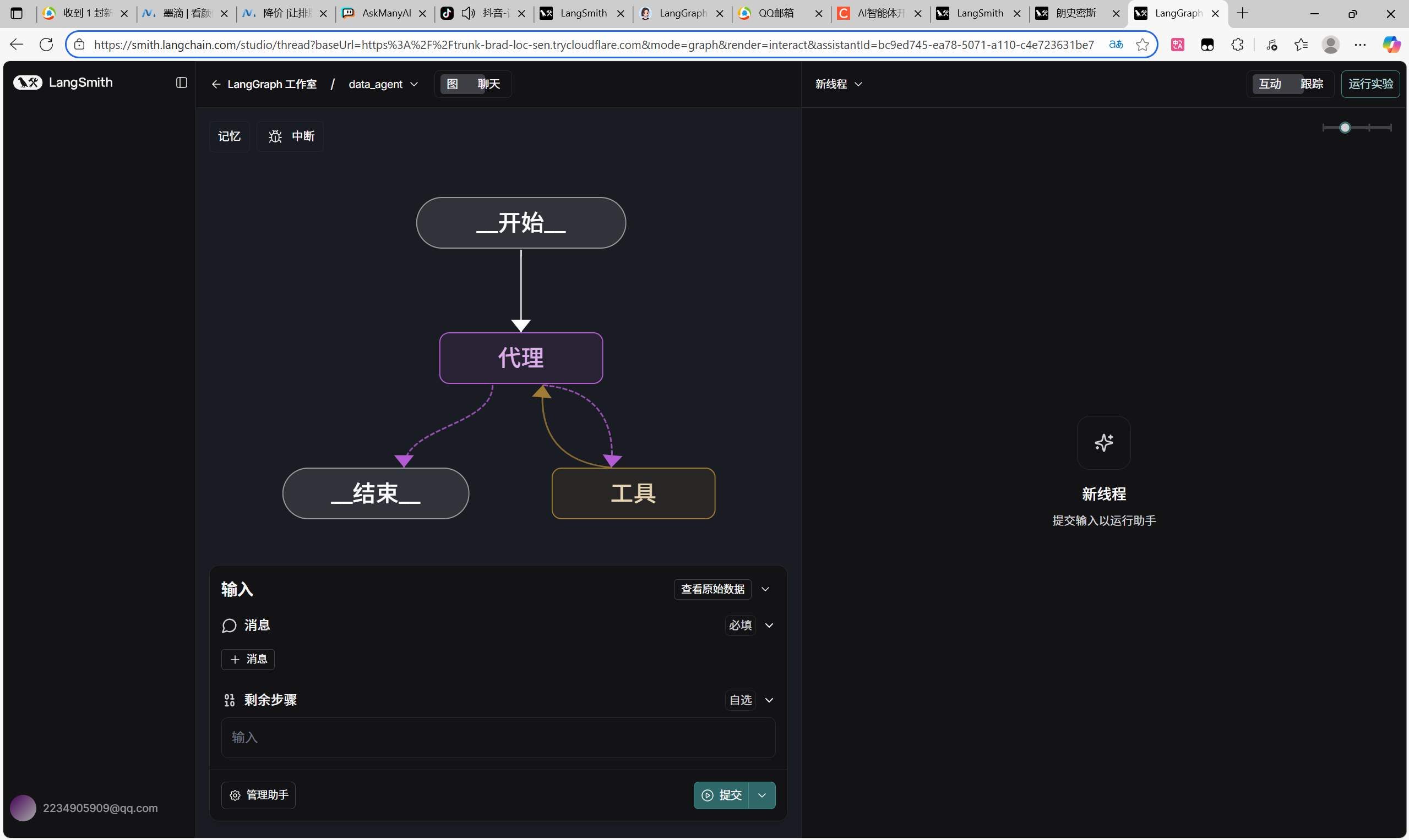 这样,langsmith平台就可以正常地加载了。加载后大家可以看到,你也的业务流程完全变成了可追踪的可视化工作流。
