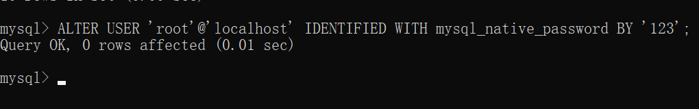 ALTER USER 'root'@'localhost' IDENTIFIED WITH mysql_native_password BY '123';