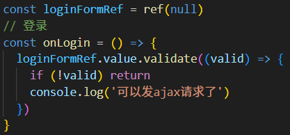 // 登录表单的响应式引用对象(获取DOM元素的引用)const loginFormRef = ref(null)