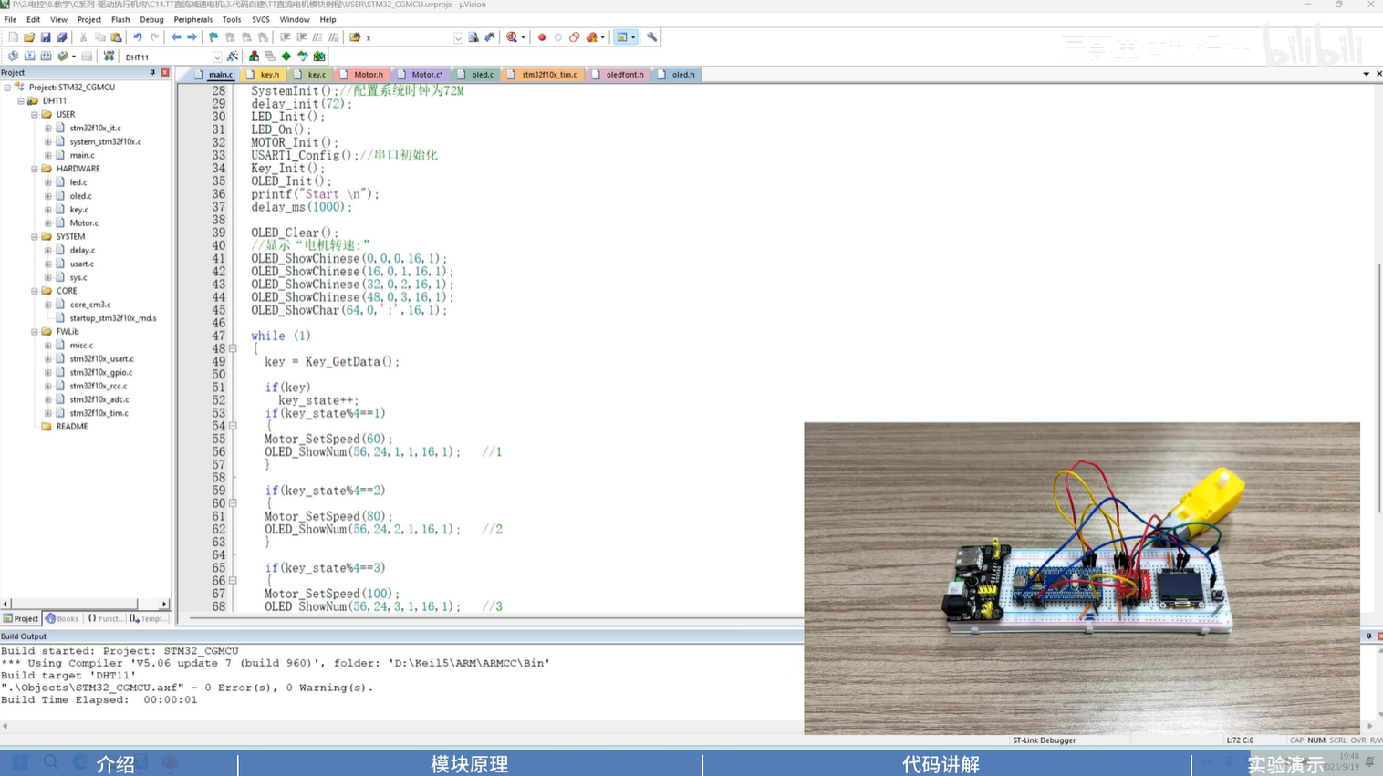 STM32F103C8T6通过TB6612控制直流电机完成开关、正反转转和调速的操作。