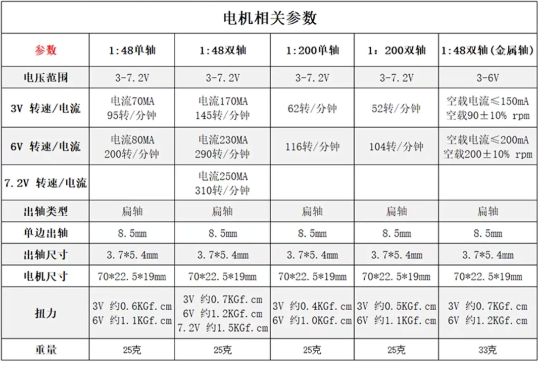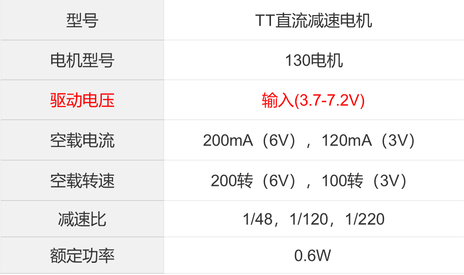 以下是TT直流减速电机的参数: