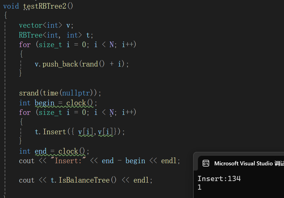 但是一旦涉及调整,我们两棵树都实现了插入,很明显,对于AVL树来说,不管怎么样的调整,都免不了去调用旋转,到后续可能插入一个结点都得搞一次旋转,一个个旋转累加起来就会造成时间用的多。