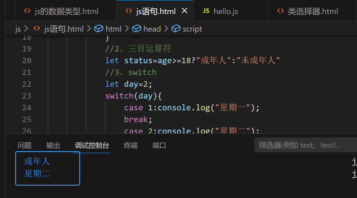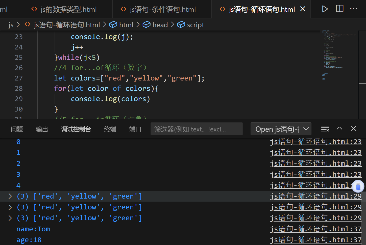 <head><meta charset="UTF-8"><meta name="viewport" content="width=device-width, initial-scale=1.0"><title>js的基本语法</title><script>//1、声明变量,变量类型是可以随时变化的var a=1;a=false;a="haha";//2、注释与java注释一模一样,单行注释//,多行注释/**/,但是没有文档注释//3、声明变量,一行可以声明多个变量var a=1,b=2;//4、js中每行语句结束使用“;”,也可以不使用,推荐都加是上var d="hello"/*5、声明变量时也可以不加var,var +变量=>作用范围在代码块中不加var声明=>作用范围为全局*/e="heihei"//6、字母大小写,语法区分大小写</script>