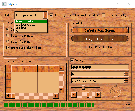 也就是说如果想更精细化的控制界面元素,可以直接子类化QCommonStyle来实现自定义样式