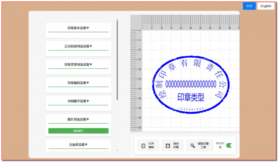第二步是调整细节参数,字体方面支持宋体、黑体等多种常用字体,字号可通过滑块自由调节,满足不同文档对印章大小的需求;边框设置模块能调整边框粗细,从适用于轻型文档的细边框,到符合正式合同要求的粗边框均可选择;若需增加印章辨识度,可在防伪码设置栏输入自定义数字或字母,系统会自动将防伪码融入印章布局,同时还能拖动滑块调整五角星大小,或勾选 “做旧效果” 选项,让印章呈现复古质感。