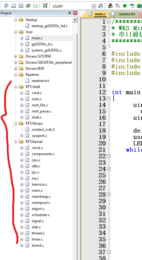 直接用CubeMX生成的RT-Thread_Nano源码,复制到自己的GD32F303工程内里。