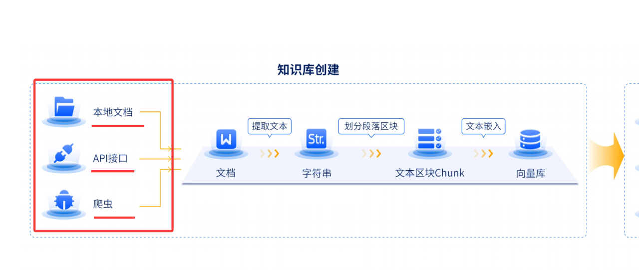外部知识库来源:可以是实时数据库(如行业统计平台数据)、特定领域文档(如企业内部手册、医学论文)、网页信息(如权威媒体报道)等;