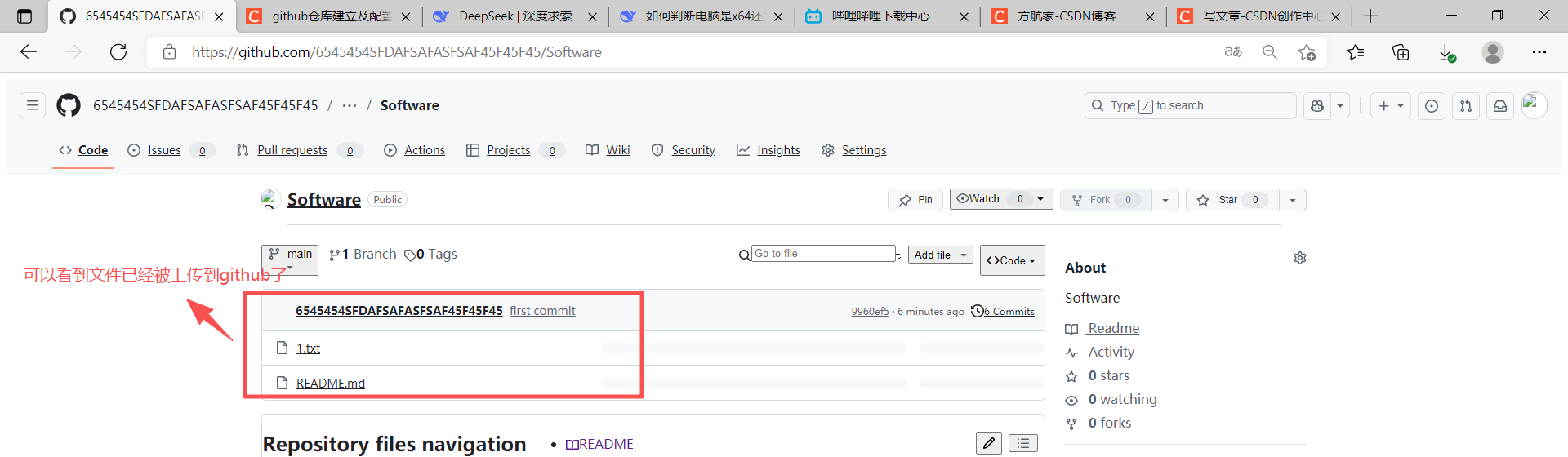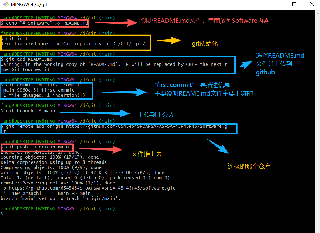 6.Git根据Github的Software的命令配置且传递第一个README.md文件