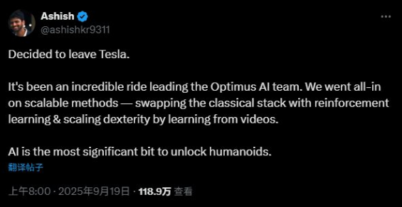 不过,2025年9月Optimus AI核心团队成员Ashish Kumar已离职并加入Meta,可能对特斯拉的技术整合进度产生影响。