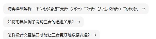 - 三式适配:C 模块接收 Instrument 的 #SET 指令定义变体(如 “文字 = 4”),P 模块通过 Efferctor 的 #PUT 调整项数并计算(如 P₁=4+3+3=10),D 模块通过 Agent 的 #GET 输出 3 元 3 次方程组,数据流向清晰无断层。
