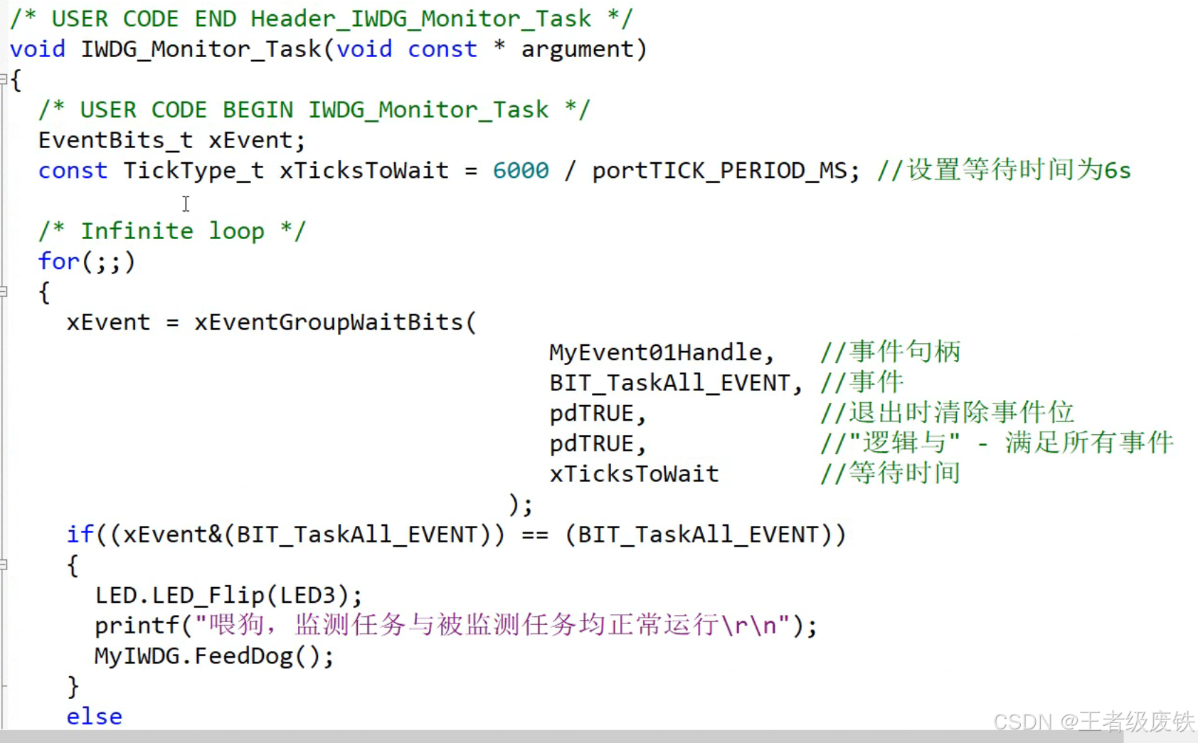 监测任务就是监测所有的任务有没有发出事件,如果监测到所有事件,就可以喂狗了,如果没检测到事件,说明有任务掉线了