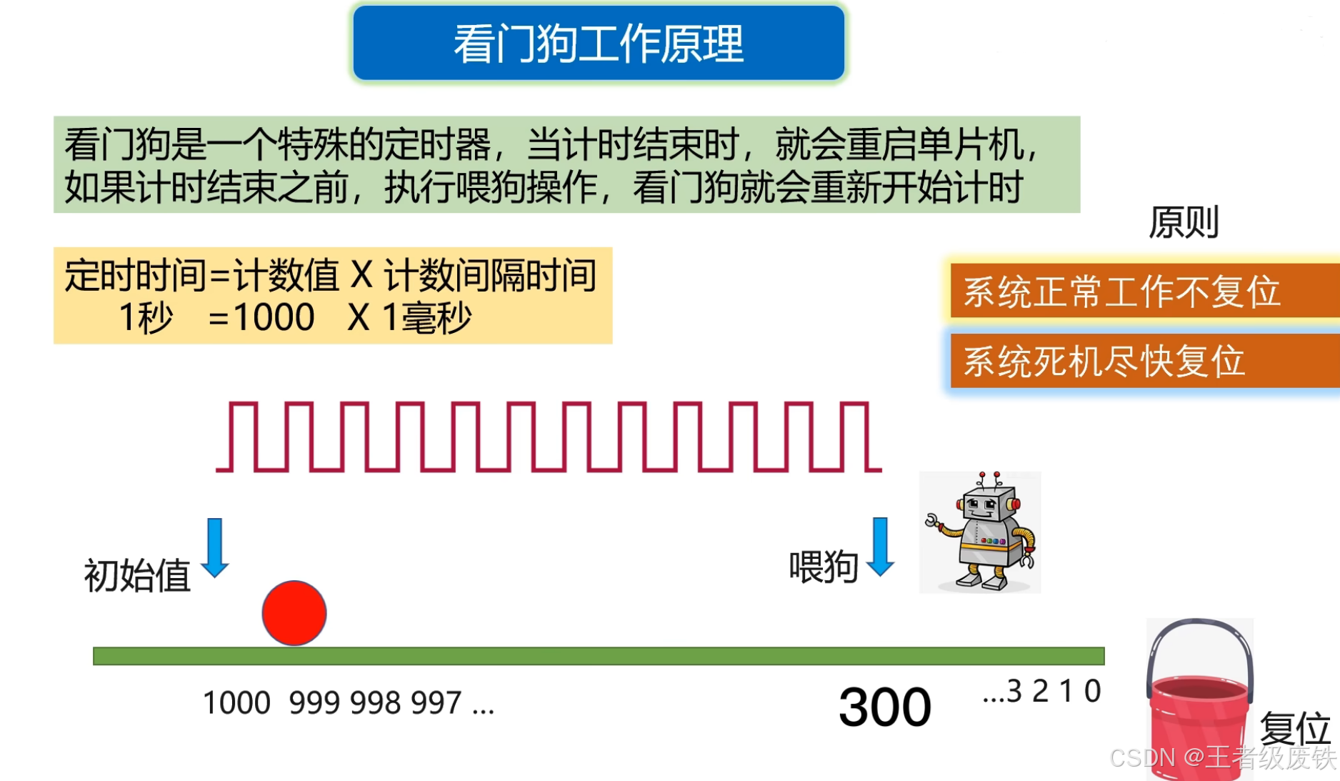 计数值减少,当减为0的时候说明没有喂狗,就会重启