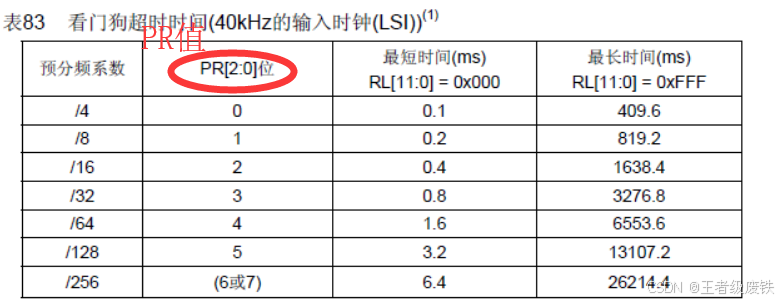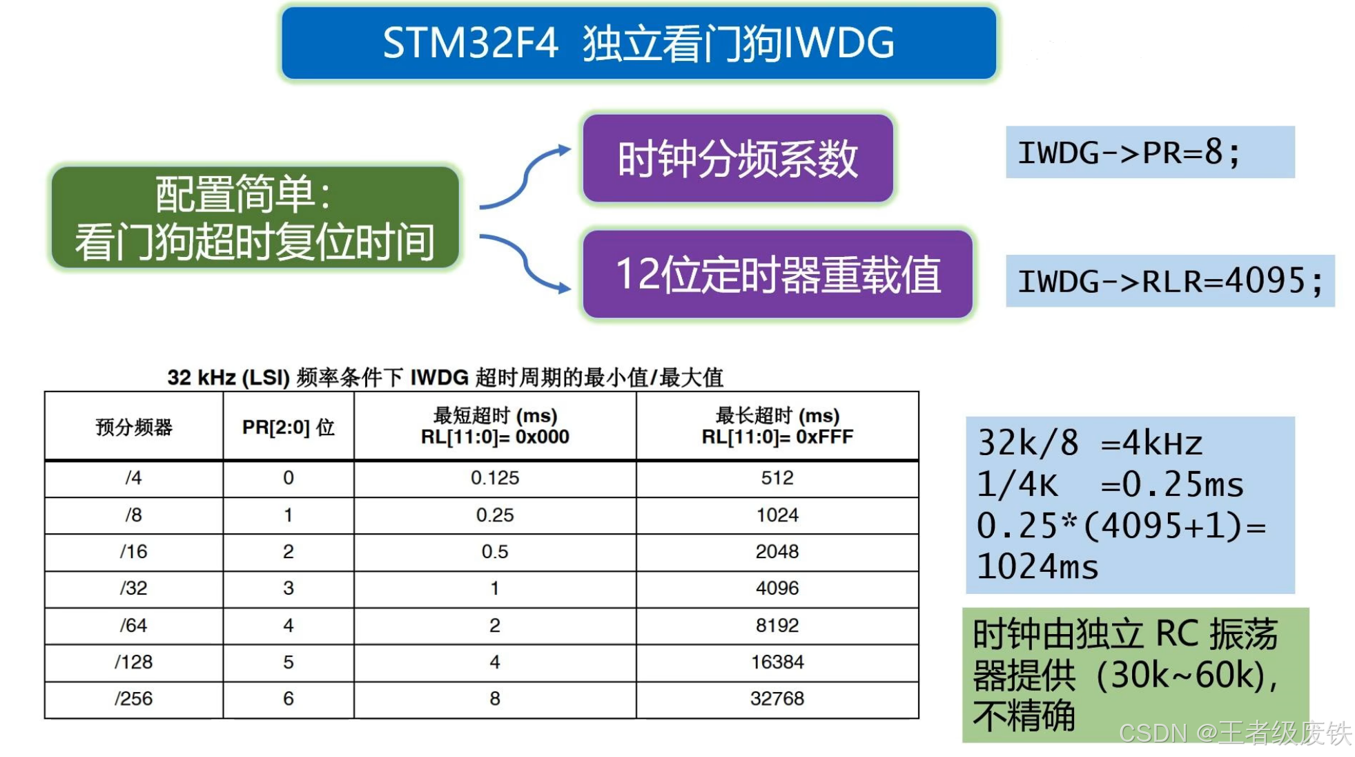 Tout=((4×2^PRER) ×RLR)/LSI时钟频率