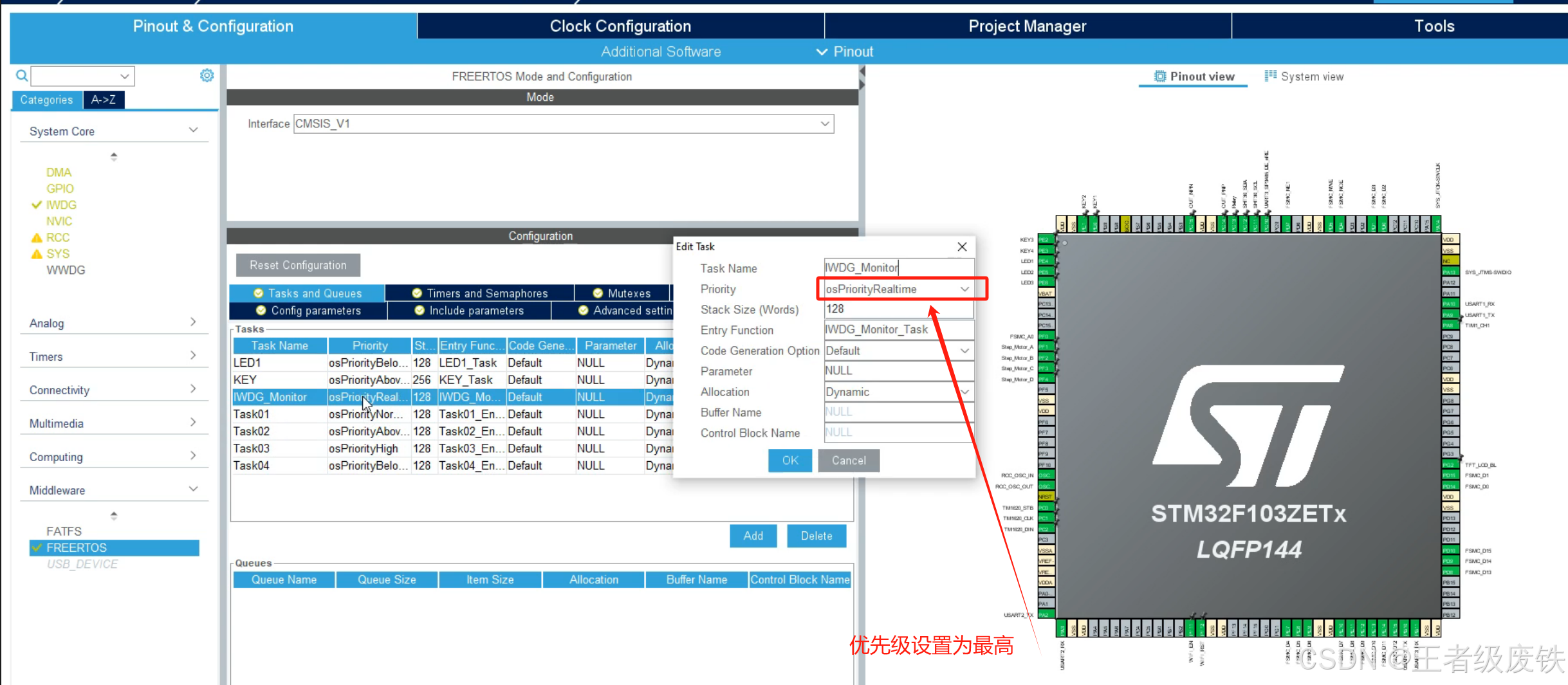 如果我在按键任务里面挂起任务1的话,就会出现无法喂狗,导致系统重启的问题