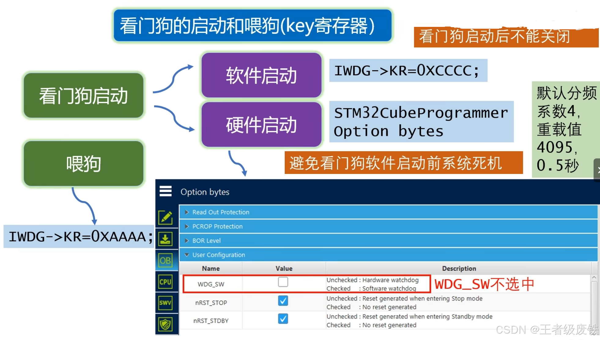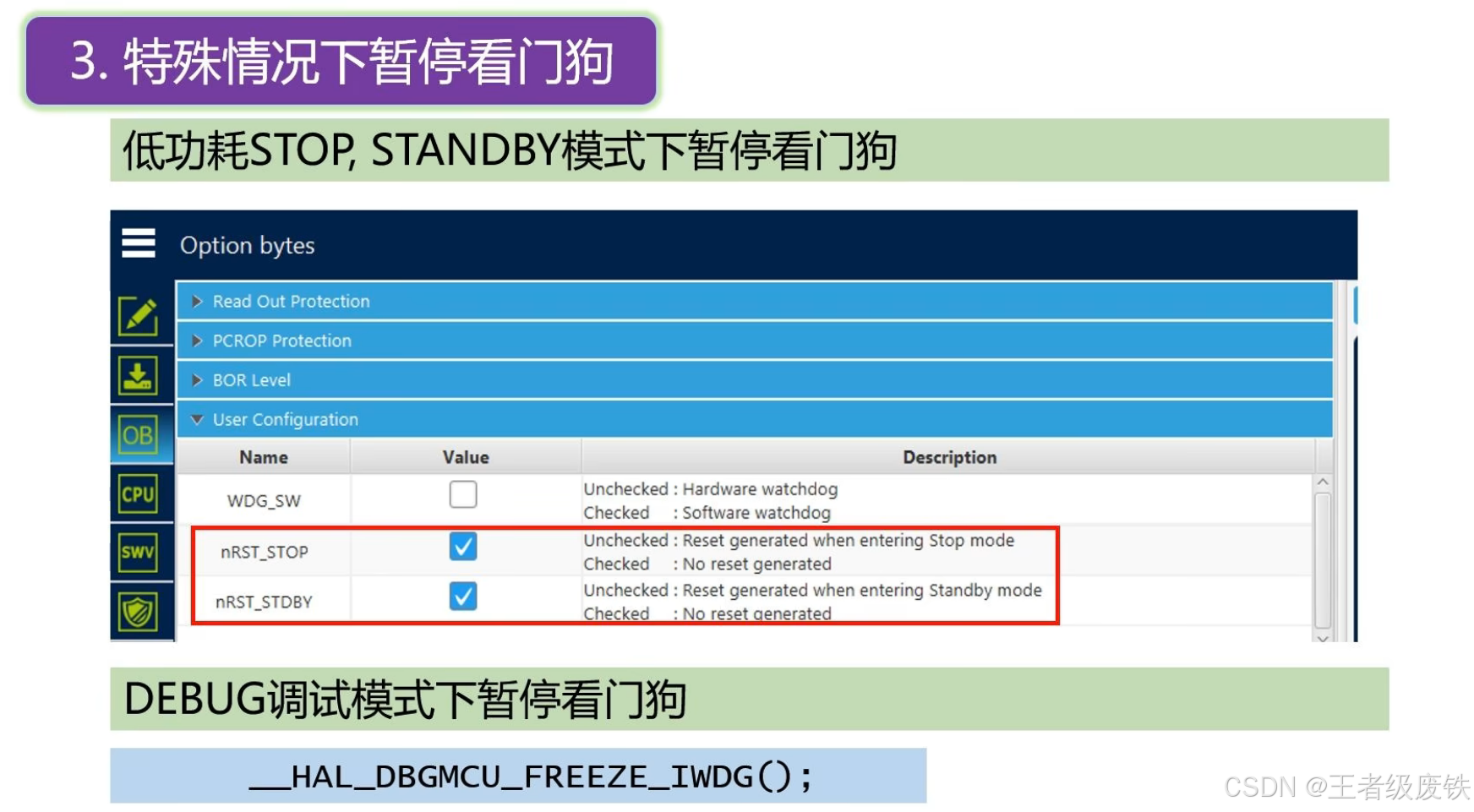 举例: HAL_IWDG_Refresh(&hiwdg); //看门狗喂狗