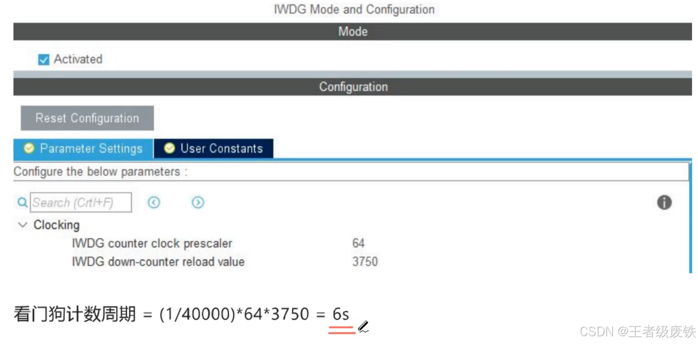 这里的RC时钟频率为40K,64分频,计数值3750,刚好6秒