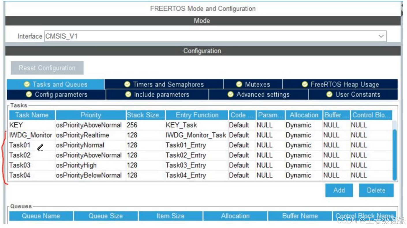 - 监测任务与被监测任务均不可以挂起或删除,否则,无法及时喂狗导致系统复位