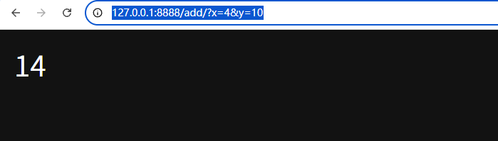 访问网页即可显示页面 : http://127.0.0.1:8888/add/?x=4&y=10