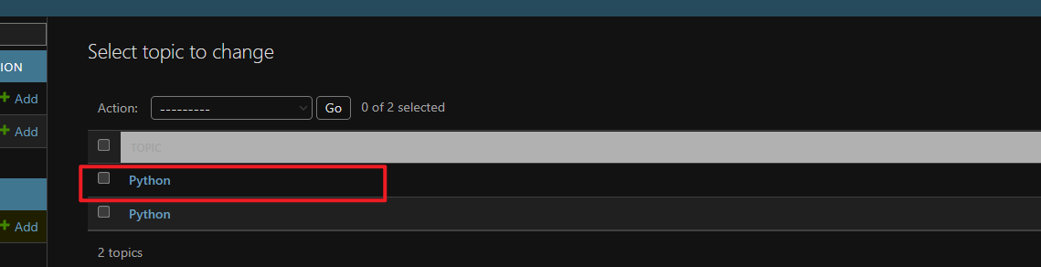 <QuerySet [<Topic: Python>, <Topic: halo>, <Topic: Python字典>, <Topic: python列表>]>>> t=Topic.objects.all()>>> for i in t: