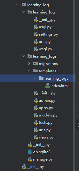 django-admin.exe startproject learning_log## 创建一个Python内置的数据库