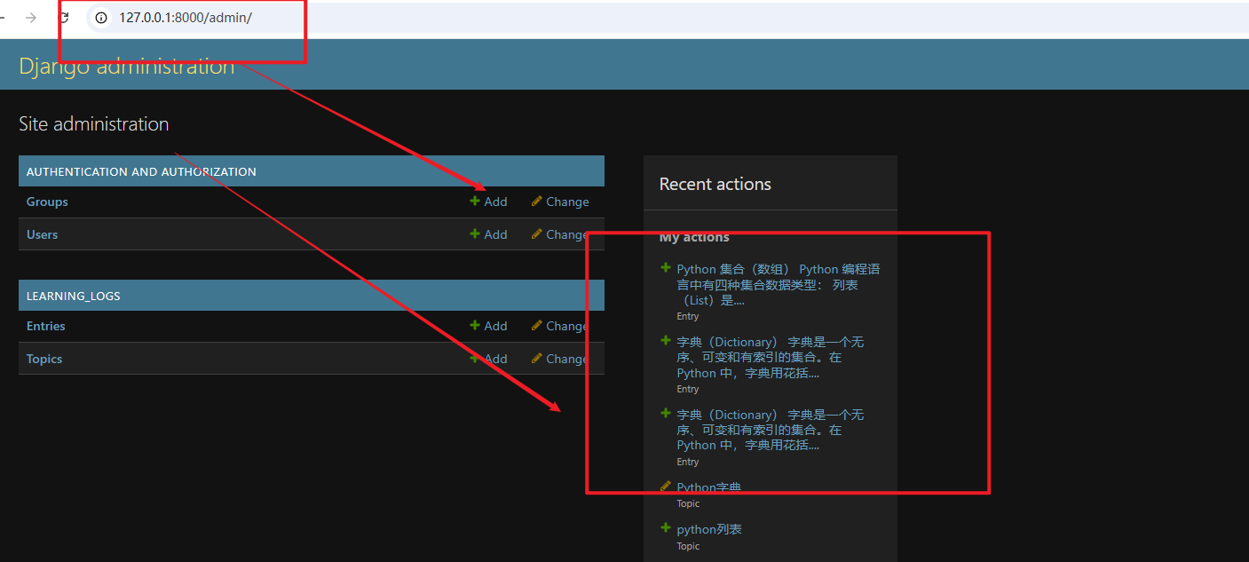 admin.site.register(Entry) ### 通过admin管理模型## 启动django