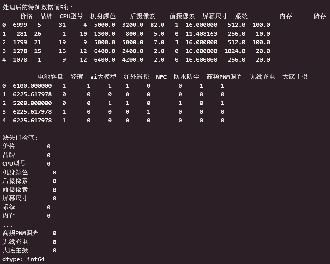 for col in categorical_columns:if col in X_processed.columns:le = LabelEncoder()X_processed[col] = le.fit_transform(X_processed[col].astype(str))label_encoders[col] = le# 检查处理后的数据