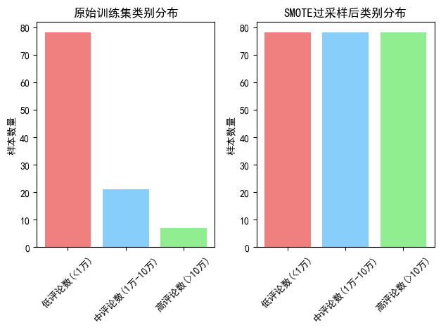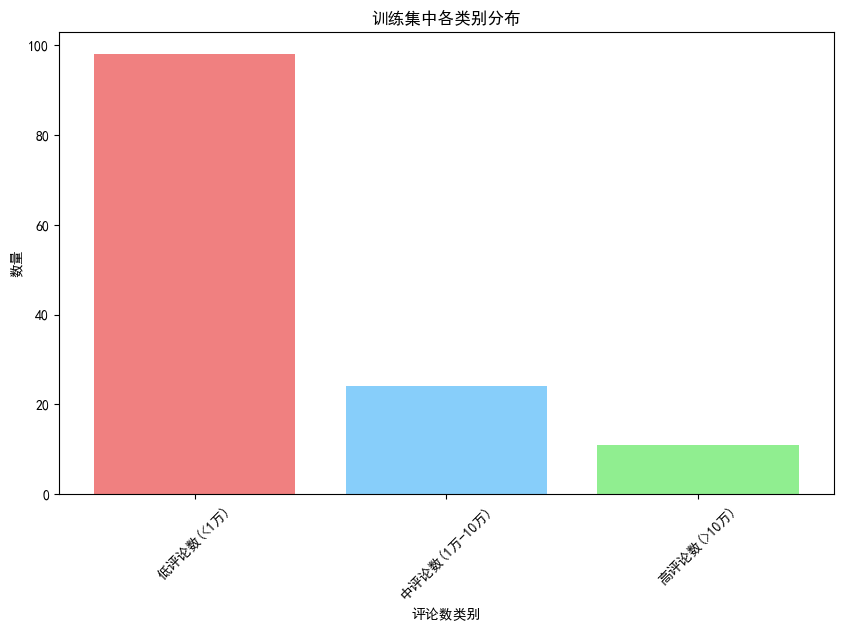 def categorize_comments(comment_count):if comment_count > 100000:return 2 # 高评论数elif comment_count > 10000:return 1 # 中等评论数else:return 0 # 低评论数y_categorical = y_processed.apply(categorize_comments)