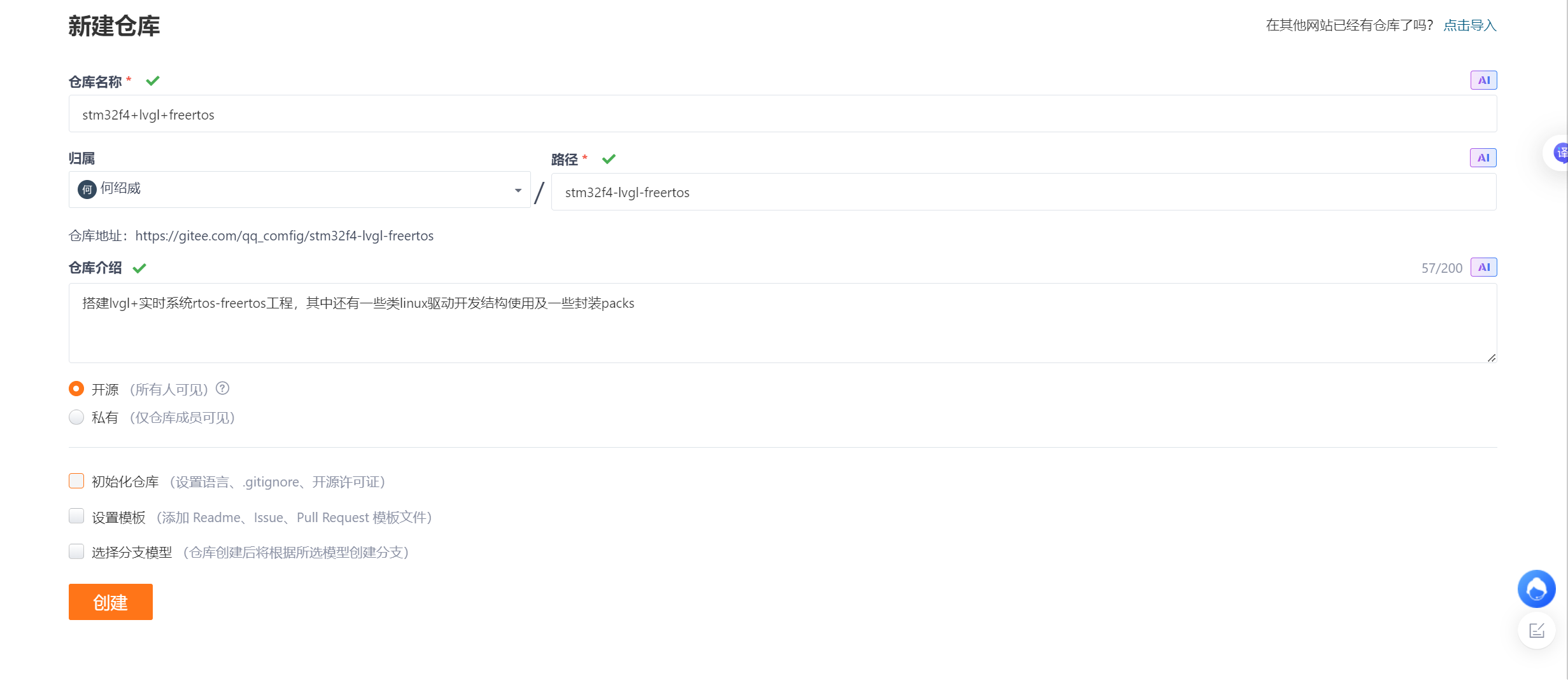 首先设置仓库名称和仓库的介绍,创建仓库。