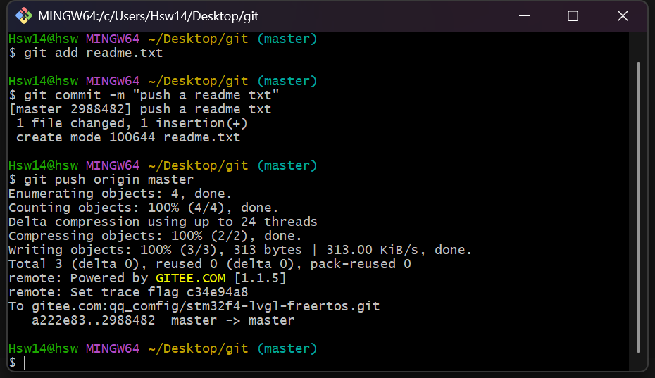首先先创建一个临时文件夹,将需要更新的文件放入其中,然后打开gitee终端,输入