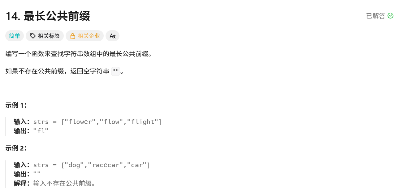 题目链接:14. 最长公共前缀 - 力扣(LeetCode)