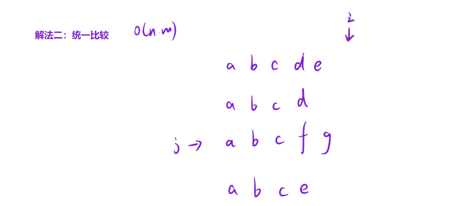 提取两个字符串的最长公共前缀的思路:当两个字符串对应的字符相同且i在两个字符串之间不越界的情况下,让i++即可