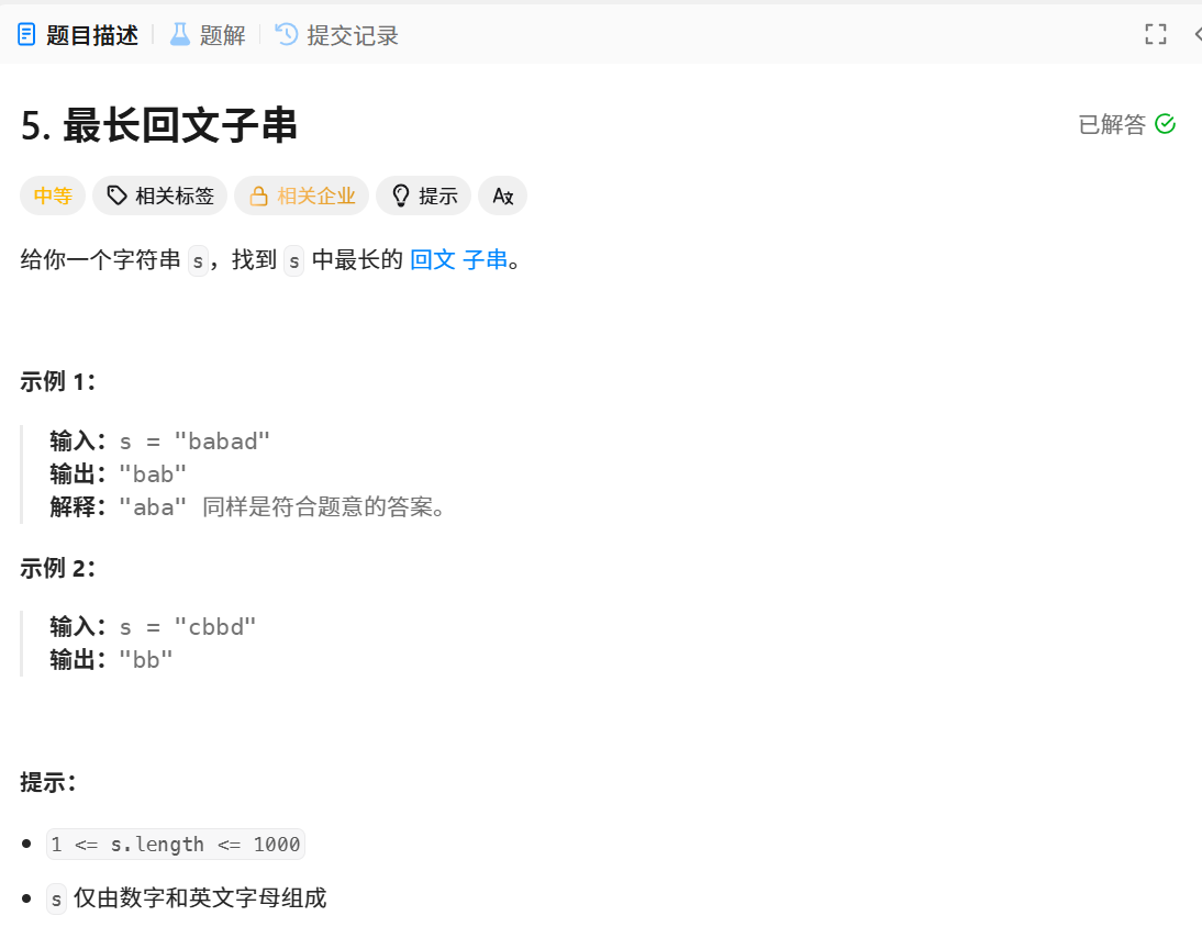 题目链接:5. 最长回文子串 - 力扣(LeetCode)