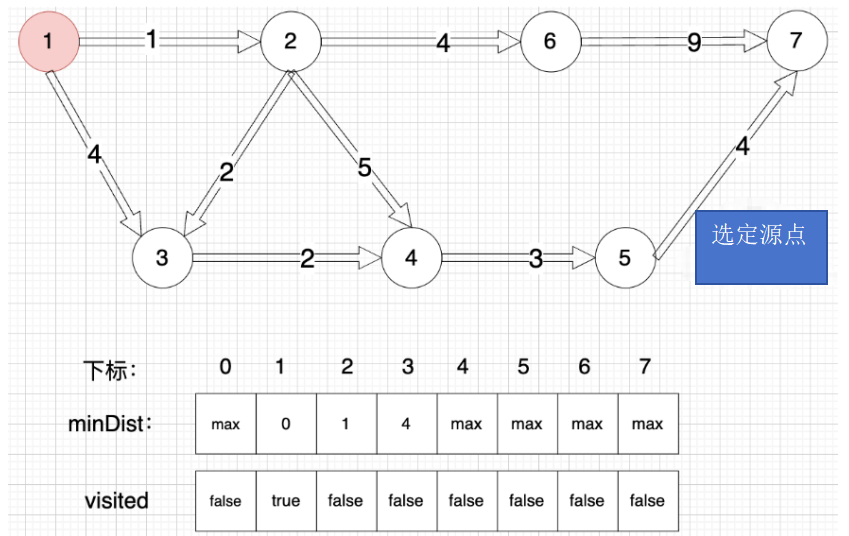 minDist数组 用来记录 每一个节点距离源点的最小距离。
