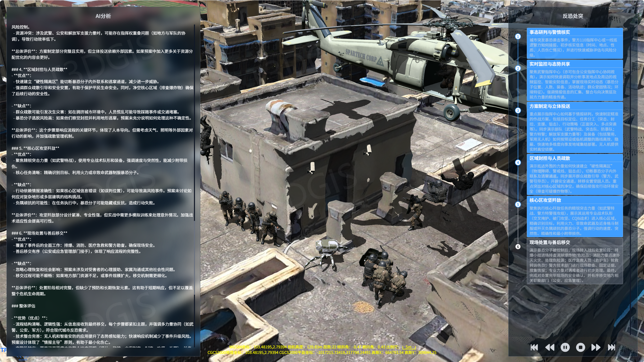 1、智能全域+推演演绎,完美契合AI分析和全流程推演功能。支持用户完成推演脚本撰写后,通过一键触发 AI 校验功能。系统基于预置算法模型与领域知识库,自动对脚本中的逻辑连贯性、数据合理性、场景匹配度、流程完整性等维度进行检测,精准定位漏洞点与优化方向,并生成可视化校验报告;为人员决策提供辅助。(建议最低可使用DeepSeek R1 8b;其硬件最低配置GPU4060 8G;内存16G)