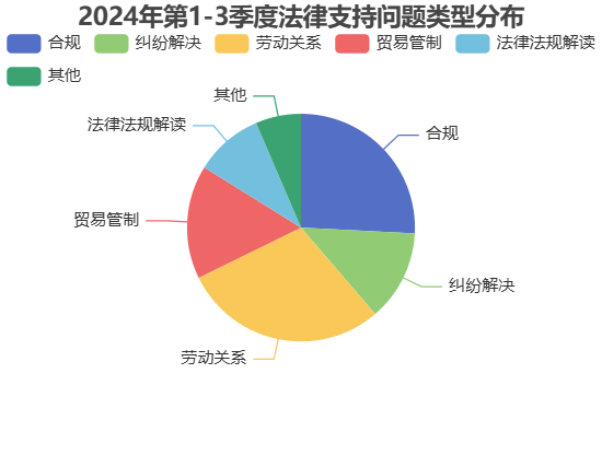 合规(8次)、纠纷解决(4次)、劳动关系(9次)、贸易管制(5次)、法律法规解读(3次)、其他(2次)"