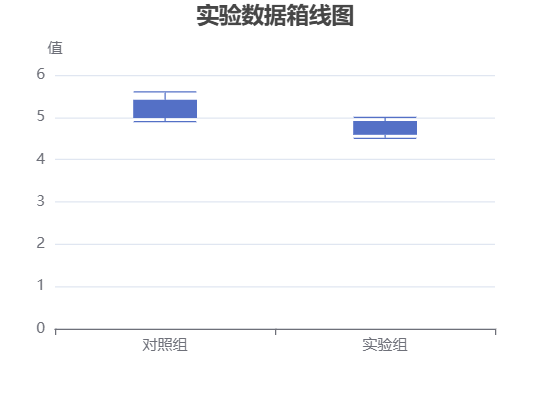 "绘制两组实验数据箱线图: 对照组:[4.9,5.1,5.3,5.0,5.6,5.2,5.4] 实验组:[4.5,4.7,4.8,4.6,5.0,4.9,4.7] 添加T检验p值标注,使用星号标记显著性水平"