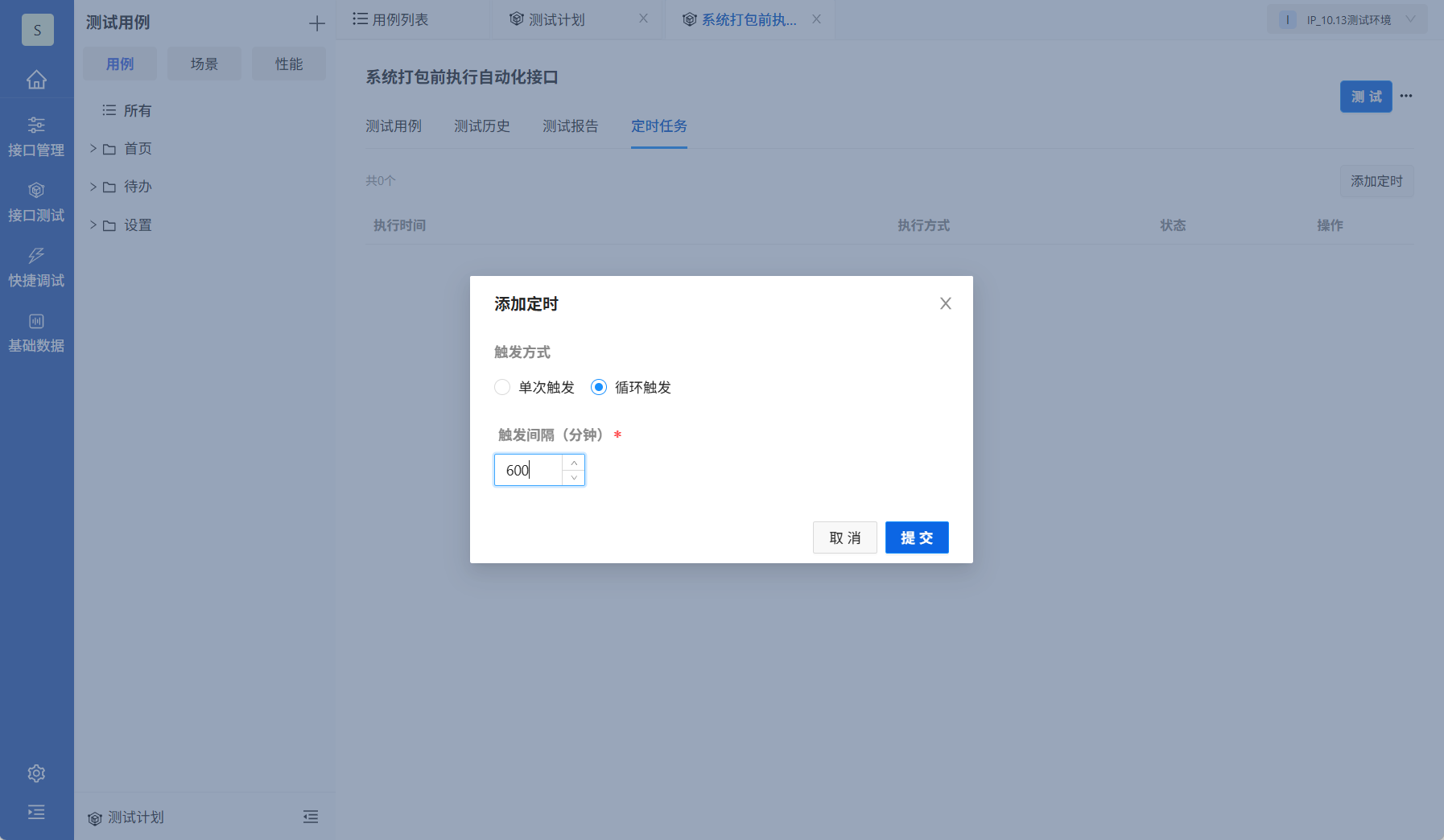 测试计划还可以通过定时任务的方式执行,分为单次触发、循环触发。