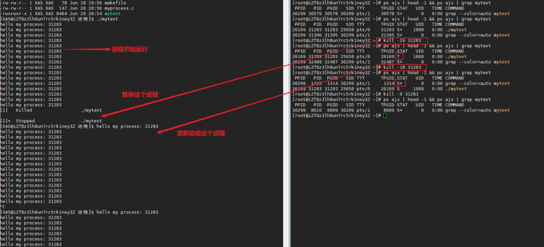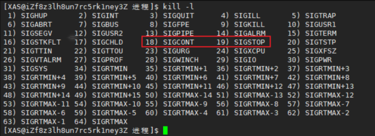 💬 所以呢,如果我们要将一个进程给终止的话,发送19号信号即可,要让其继续启动起来,则发起18号信号