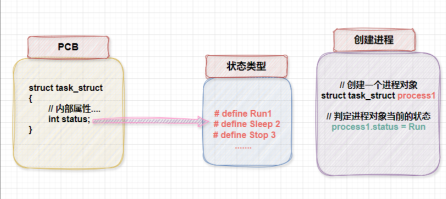 本质定义:进程状态本质上是进程控制块(PCB,在 Linux 中为 task_struct 结构体)内部的一个整型变量(int status),它仅作为标志位标识进程当前的状态。