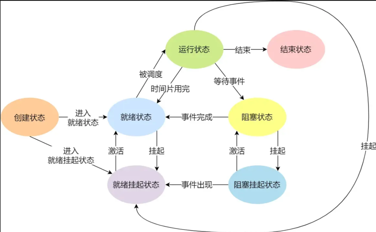 - 对于进程而言呢,它是操作系统中的概念,如果有学习过《操作系统》这门学科的话应该可以很清楚对于进程而言的话是存在着许许多多的状态,如果一开始刚刚接触的小伙伴一定会感觉这么多状态要怎么区分呀😵
