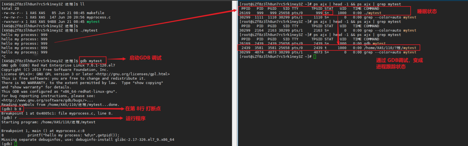 - 在【gdb】的环境下去运行一个断点的话则可以使其处于进程跟踪状态t