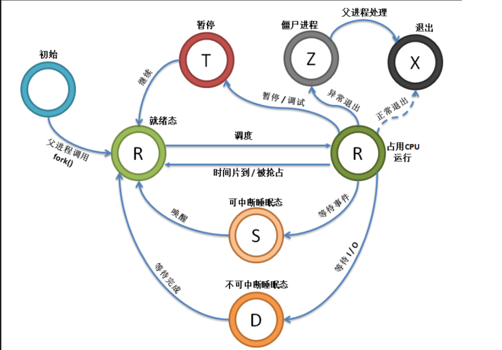 - 其实那么多的状态,真正主要的也就那么几个,所以接下去我会中重点讲解以下几种进程的状态