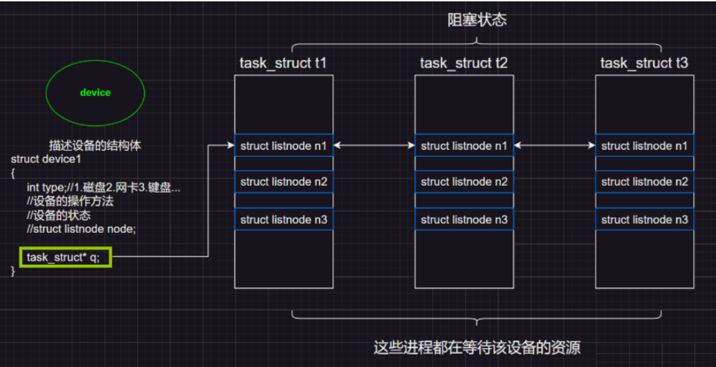 - 此时 PCB(task_struct) 就会被设置为 阻塞状态,并链入等待的资源提供的等待队列。