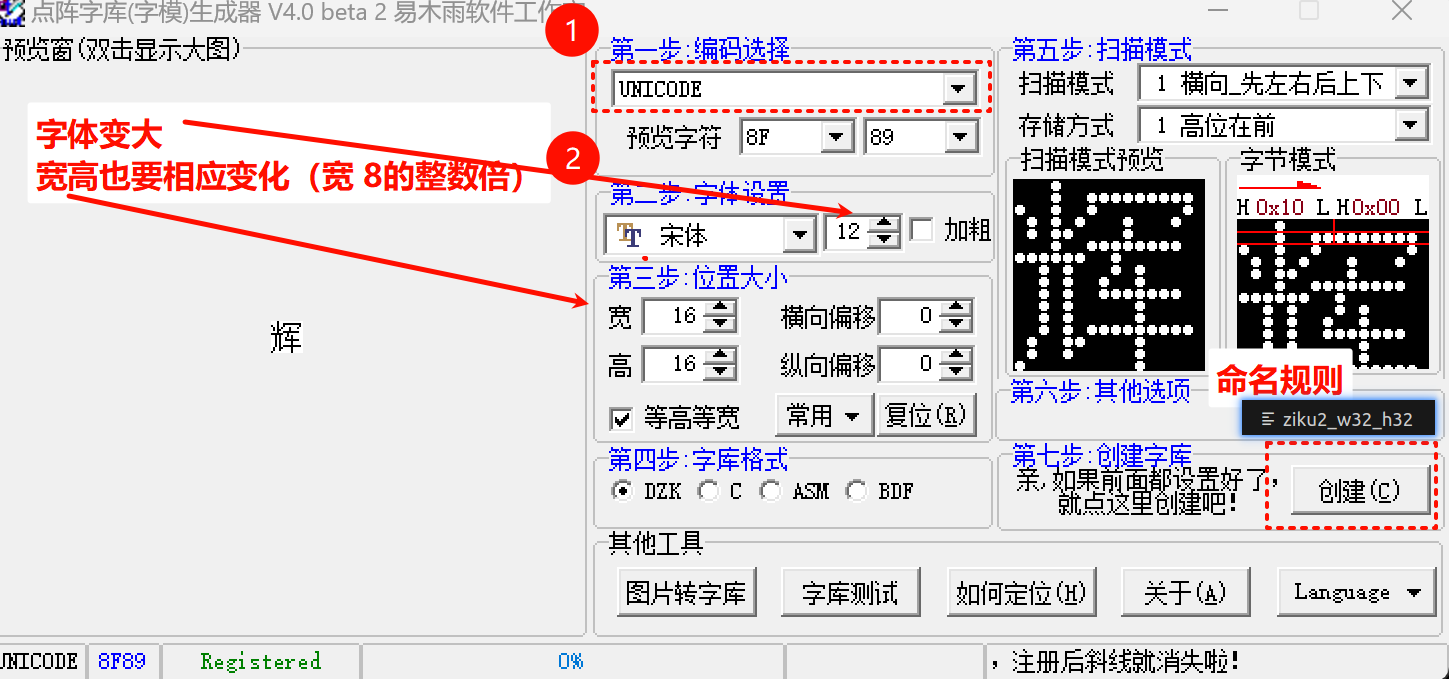 - 24->宽(最好是8的整数倍,一般字模软件生成会调整)