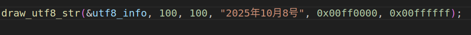 draw_utf8_str(&utf8_info, 100, 100, "2025年10月8号", 0x00ff0000, 0x00ffffff);